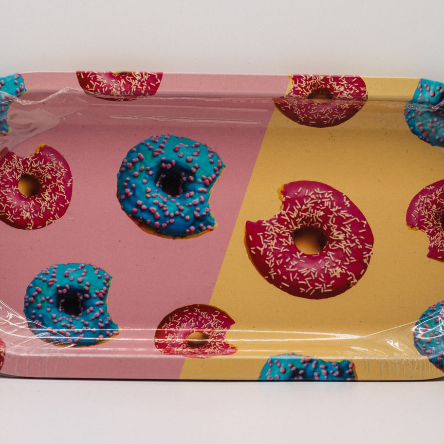 A kit consisting of a grinder, tray, silicone dab holder, bong, dab banger, dab scoop, ashtray and cleaning brush, all themed after your average donut.